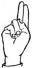 На ћирилици написано ДАНИЈЕЛ СЕКУЛОВ састоји се из 14 слова [?]. Исписано ћириличном једноручном азбуком за глувонеме: